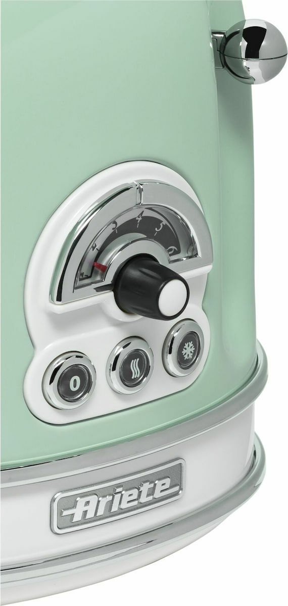 Η ηλεκτρική τοστιέρα από τη σειρά vintage της Ariete φρυγανίζει 2 φέτες ψωμί ταυτόχρονα, χάρη στη διπλή υποδοχή, με δυνατότητα επιλογής του βαθμού ψησίματος και φρυγανίσματος του ψωμιού που προτιμάτε, χάρη στα 6 διαφορετικά επίπεδα.