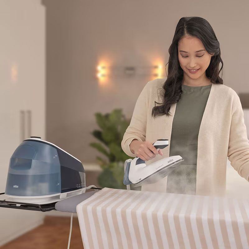 Σύστημα Σιδερώματος Braun IS5155WH με iCare Technology για ανέμελο σιδέρωμα, εύκολα, γρήγορα, με ασφάλεια για όλα τα υφάσματα, με extra large αποσπώμενο δοχείο νερού χωρητικότητας 2lt και νέο σύστημα καθαρισμού αλάτων Fast Clean System! Έτοιμο για χρήση σε μόλις 2 λεπτά! Με 7.5bar πίεση ατμού και 125 gr/min συνεχή ροή ατμού.