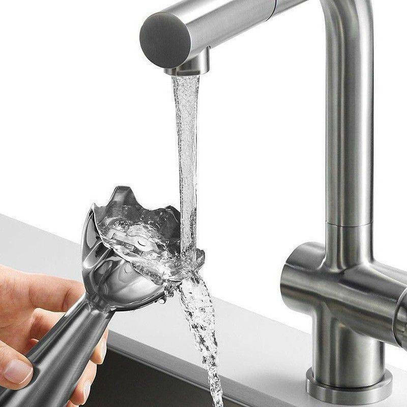 Σχεδιασμός ράβδου σε σχήμα καμπάνας: Εξτρα μικρή κάθετη λεπίδα που επιτρέπει περισσότερο κόψιμο και πολτοποιεί μεγάλα κομμάτια φαγητού με τη μικρότερη προσπάθεια.