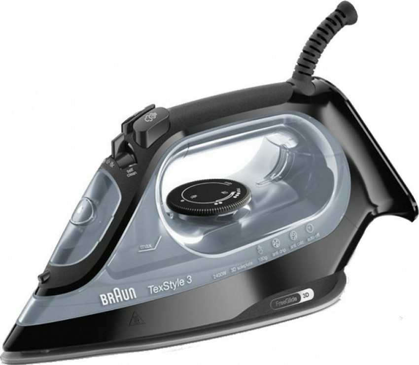 Σίδερο ατμού της Braun με ισχύ 2.400W και πλάκα Freeglide 3D Superceramic, που εξασφαλίζει αποδοτική διάδοση της θερμοκρασίας στα υφάσματα. Διαθέτει σύστημα αφαλάτωσης και παραγωγή κάθετου ατμού.