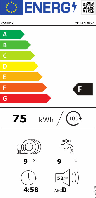Πλυντήριο πιάτων της Candy με χωρητικότητα για 9 σερβίτσια, που μπορεί να εξυπηρετήσει τις ανάγκες μιας τριμελούς οικογένειας.