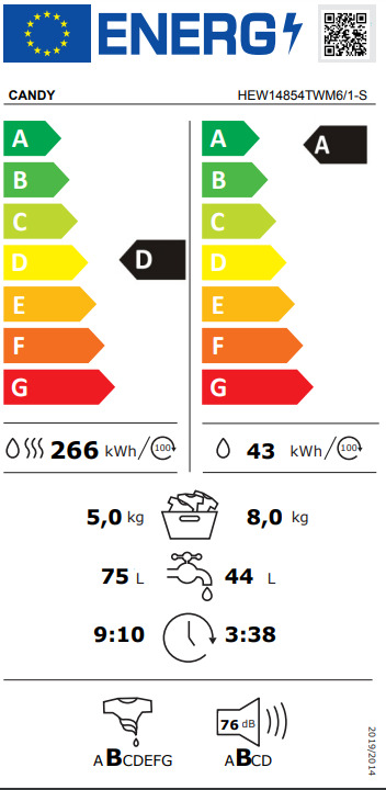 Πλυντήριο – στεγνωτήριο ρούχων από τον κατασκευαστή Candy, κατάλληλο για να καλύψει τις ανάγκες μιας τετραμελούς οικογένειας.