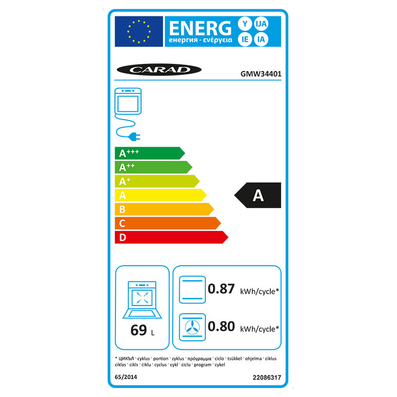 Η ελεύθερη κουζίνα Carad GMW34401 είναι μια μεικτή κουζίνα που συνδυάζει 3 εστίες αερίου και μία ηλεκτρική εστία, με έναν multifunction ηλεκτρικό φούρνο 69 λίτρων. Η συσκευή είναι λευκού χρώματος.