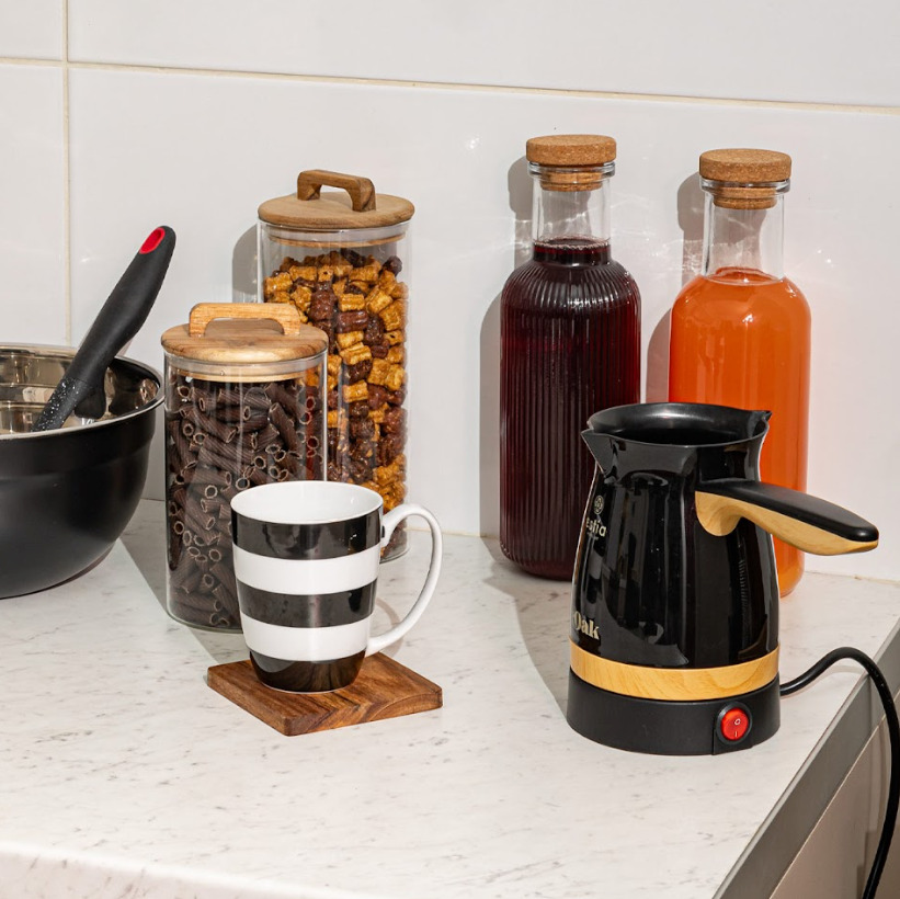 Αναβαθμίστε την καθημερινή ρουτίνα παρασκευής ελληνικού καφέ με το ηλεκτρικό μπρίκι Oak. Με ισχύ 800W και χωρητικότητα 0.75 λίτρα, αυτό το μπρίκι είναι ιδανικό για γρήγορη και αποτελεσματική παρασκευή του πρωινού καφέ. Διαθέτει αποσπώμενη βάση 360° για απόλυτη ευκολία κατά τη χρήση και αντιθερμικά τοιχώματα. Η εργονομική λαβή εξασφαλίζει άνετο κράτημα και σταθερότητα. Η σειρά ηλεκτρικών συσκευών Oak, περιλαμβάνει μία γκάμα συσκευών για προετοιμασία φαγητού και πρωινού. Αναβαθμίστε την καθημερινότητά σας με στυλ και λειτουργικότητα, ενσωματώνοντας το μοντέρνο σχεδιασμό, με το μαύρο χρώμα και τις λεπτομέρειες ξύλου, στο χώρο σας.