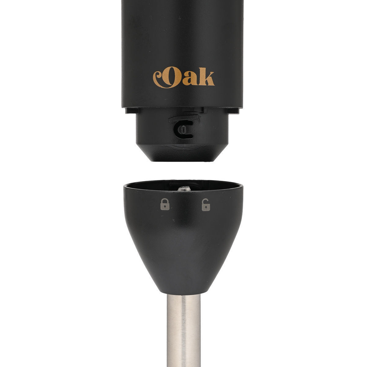 Εξοπλίστε την κουζίνα σας με το ραβδομπλέντερ Oak! Με ισχύ 800W και τέσσερις ανοξείδωτες λεπίδες, αυτό το ραβδομπλέντερ προσφέρει αποτελεσματική και γρήγορη ανάμιξη, ιδανικό για σούπες, σάλτσες, smoothies και πολλά άλλα. Περιλαμβάνει ένα μπολ ανάμιξης 500ml με δύο επιπλέον ανοξείδωτες λεπίδες για ευκολία στο ψιλοκόμμα και την ανάμιξη. Διαθέτει δύο ταχύτητες και ειδική λειτουργία Turbo, ενώ η εργονομική λαβή του εξασφαλίζει άνεση και σταθερότητα κατά τη χρήση. Η σειρά ηλεκτρικών συσκευών Oak, περιλαμβάνει μία γκάμα συσκευών για προετοιμασία φαγητού και πρωινού. Αναβαθμίστε την καθημερινότητά σας με στυλ και λειτουργικότητα, ενσωματώνοντας το μοντέρνο σχεδιασμό, με το μαύρο χρώμα και τις λεπτομέρειες ξύλου, στο χώρο σας.