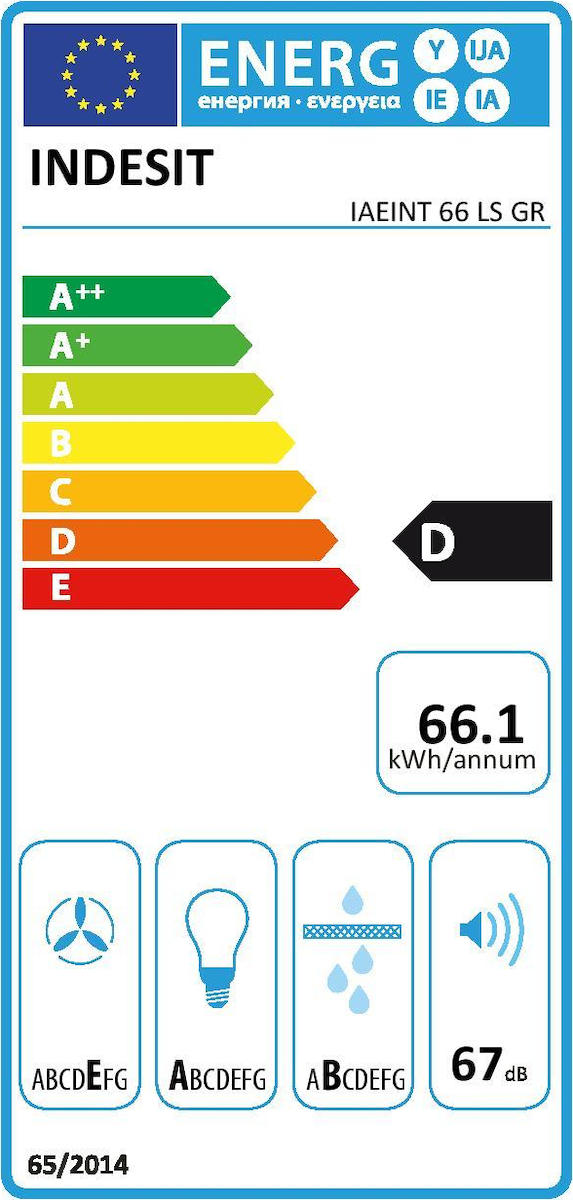 Indesit Iaeint 66 LS GR Πτυσσόμενος Απορροφητήρας 59.9cm Λευκός