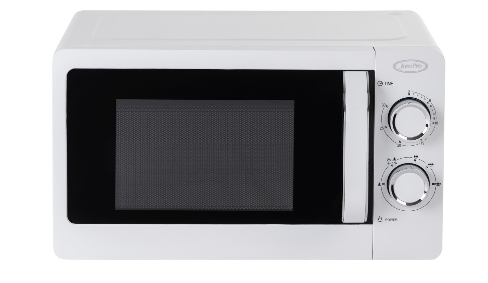 Φούρνος μικροκυμάτων Juro-Pro με καλαίσθητο design, ισχύ 700W, χωρητικότητα θαλάμου 20L, μηχανικό χρονοδιακόπτη 30 λεπτών και ηχητική ειδοποίηση λήξης του χρόνου λειτουργίας.