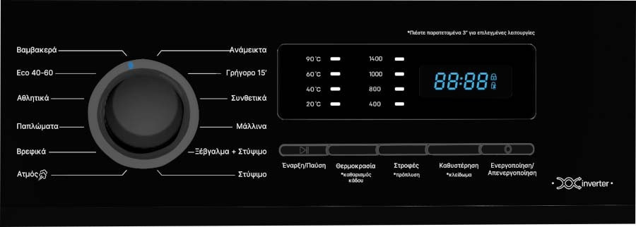 Θερμοκρασίες πλύσης(): Κρύο/20/40/60/90 για ιδανικό αποτέλεσμα σε κάθε ανάγκη.