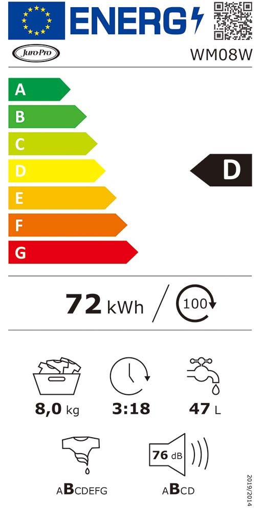 Juro-Pro Πλυντήριο Ρούχων 8kg με Ατμό 1400 Στροφών WM08W WM08W