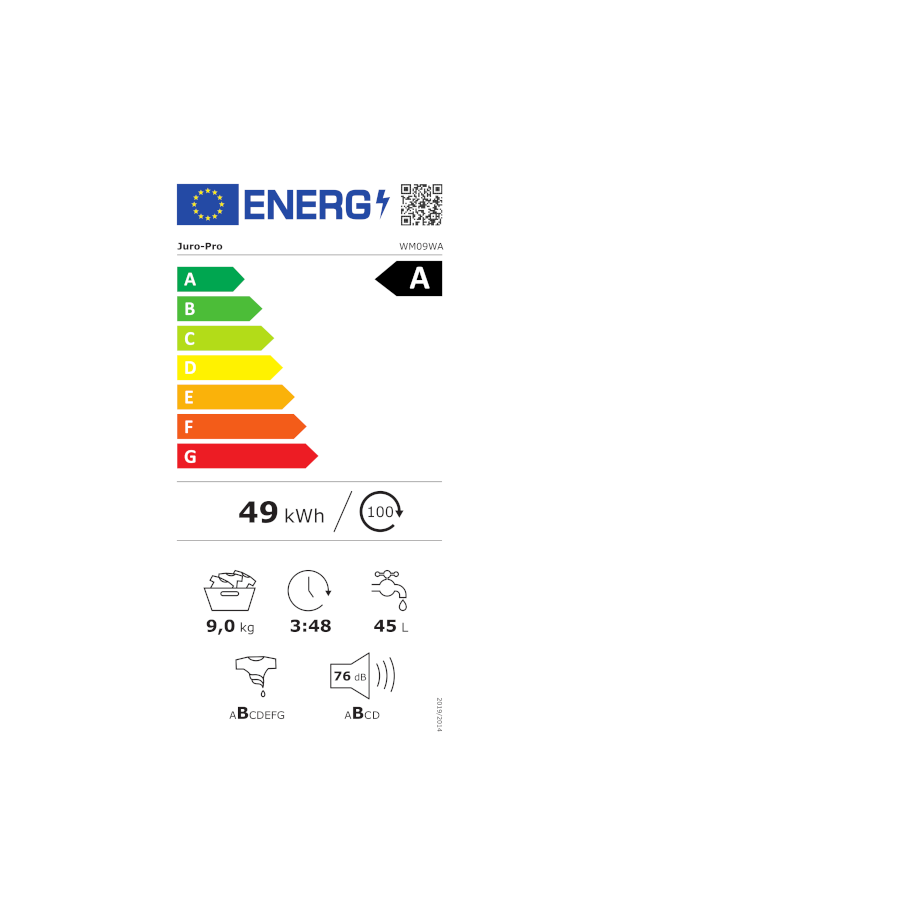 Juro-Pro Πλυντήριο Ρούχων 9kg με Ατμό 1400 Στροφών WM09W