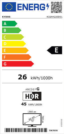 Kydos Smart Τηλεόραση 32″ HD Ready LED K32VH22SD01 HDR (2024)