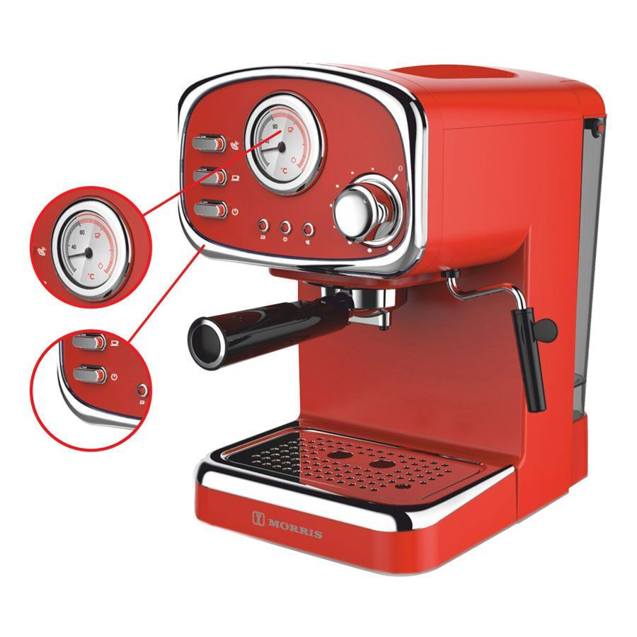 Morris Μηχανή Espresso 1100W Πίεσης 20bar Κόκκινη R20808EMR