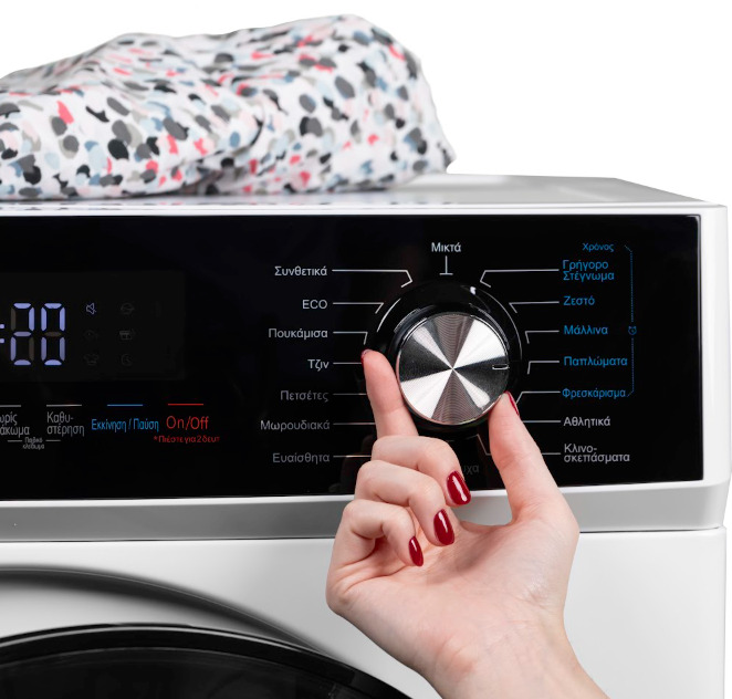✔ Το ηλεκτρονικά ελεγχόμενο χειριστήριο αφής και το LED Display σου δείχνουν τον υπολειπόμενο χρόνο, ενώ η τεχνολογία Anti-Wrinkle προστατεύει τα ρούχα από τσακίσεις.