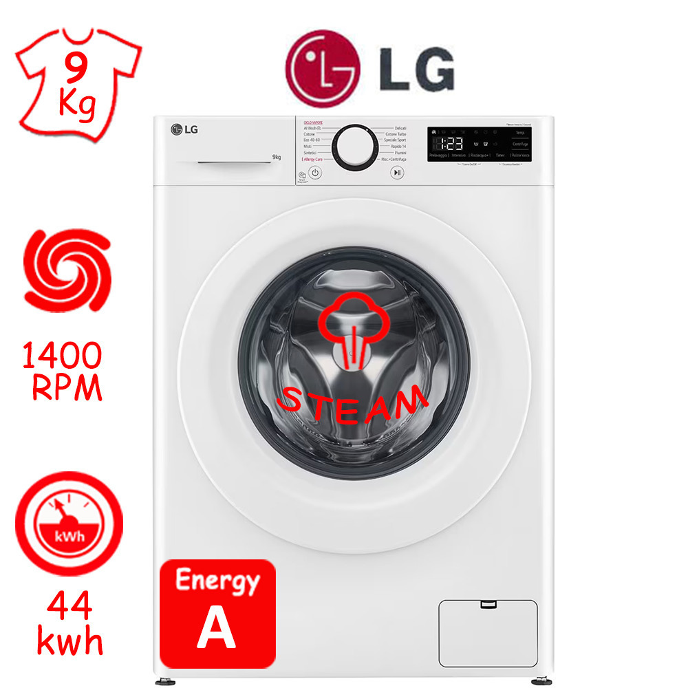 LG Πλυντήριο Ρούχων 9kg με Τεχνολογία Ατμού 1400 Στροφών AI DD F4R3009NSWW