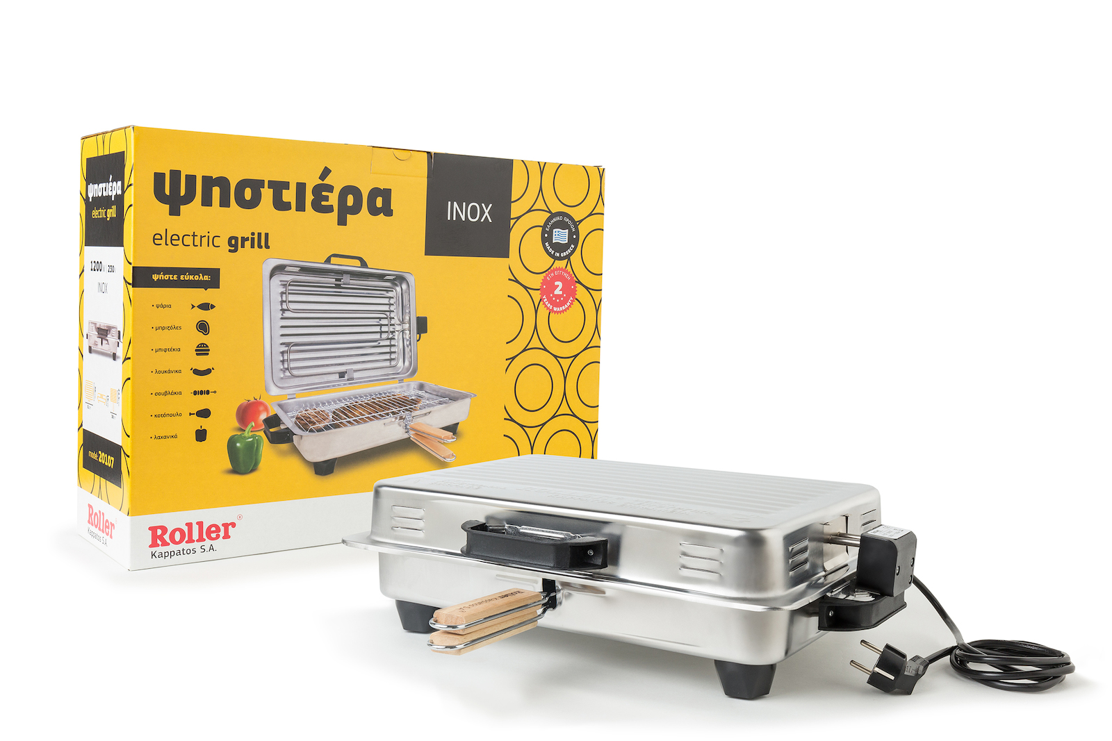 Roller Kappatos Επιτραπέζια Ηλεκτρική Ψησταριά Σχάρας 1200W Ανοξείδωτη με Καπάκι