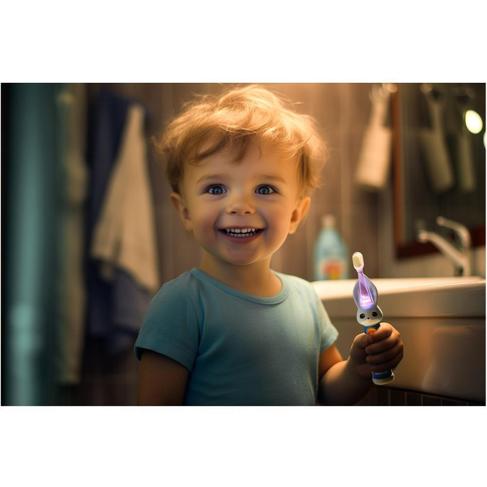 Η ηλεκτρική παιδική οδοντόβουρτσα Sencor SOC 0810BL διαθέτει έγχρωμο LED φωτισμό και αδιάβροχη προστασία IPX7.