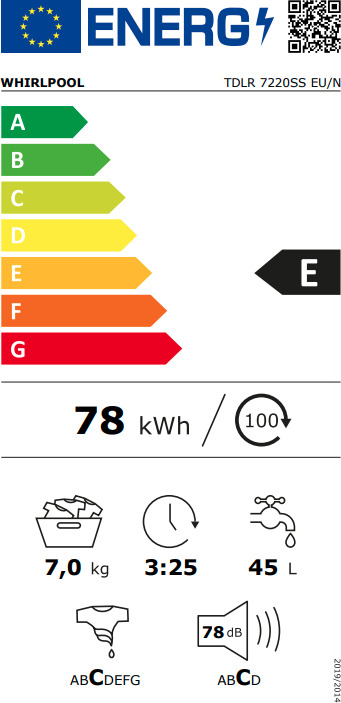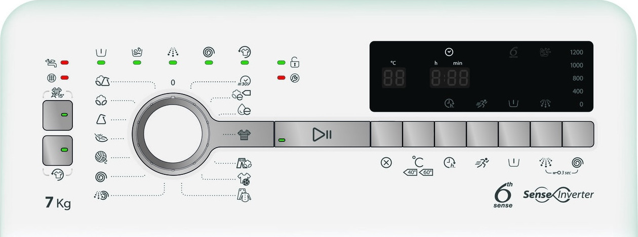 Προγράμματα: Μικτά, Eco 40-60, 20°C, Χρωματιστά, Μάλλινα, Στύψιμο, Ξέβγαλμα + Στύψιμο, Ευαίσθητα, Υγιεινή, Συνθετικά, Ταχύς 30’, Βαμβακερά, Eco Βαμβακερά